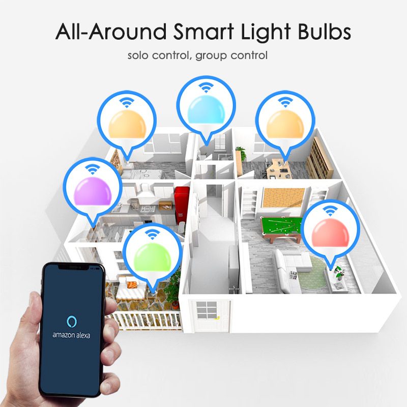 Keep connecting this wifi smart light bulb with your home network (only supports 2.4GHz Wifi), you can remotely control smart light bulb on your smartphone Simulate when you leave home, there are people in the house. Group control function allows you to control more than one smart light bulb at the same time for scene setting.