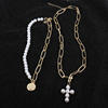 KMVEXO Fashion 2 Layers Pearls Geometric Pendants Necklaces For Women Gold Metal Snake Chain Necklace New Design Jewelry Gift