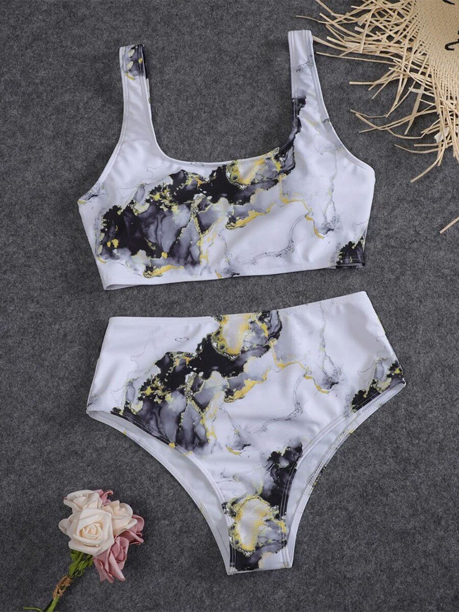 2023 New Print Sport Bandeau Push up Bikinis Sexy Marble Women Swimsuit High Waist Swimwear Women bathing suit Beach wear