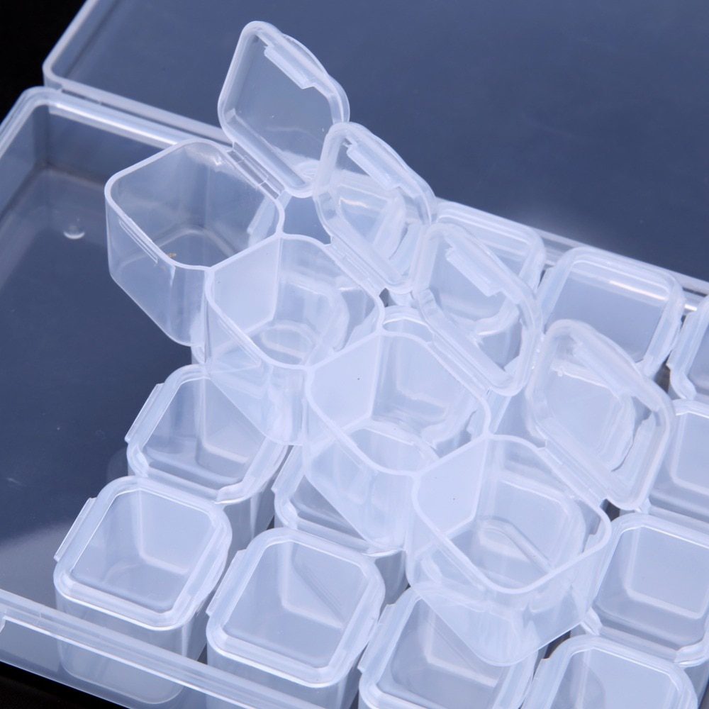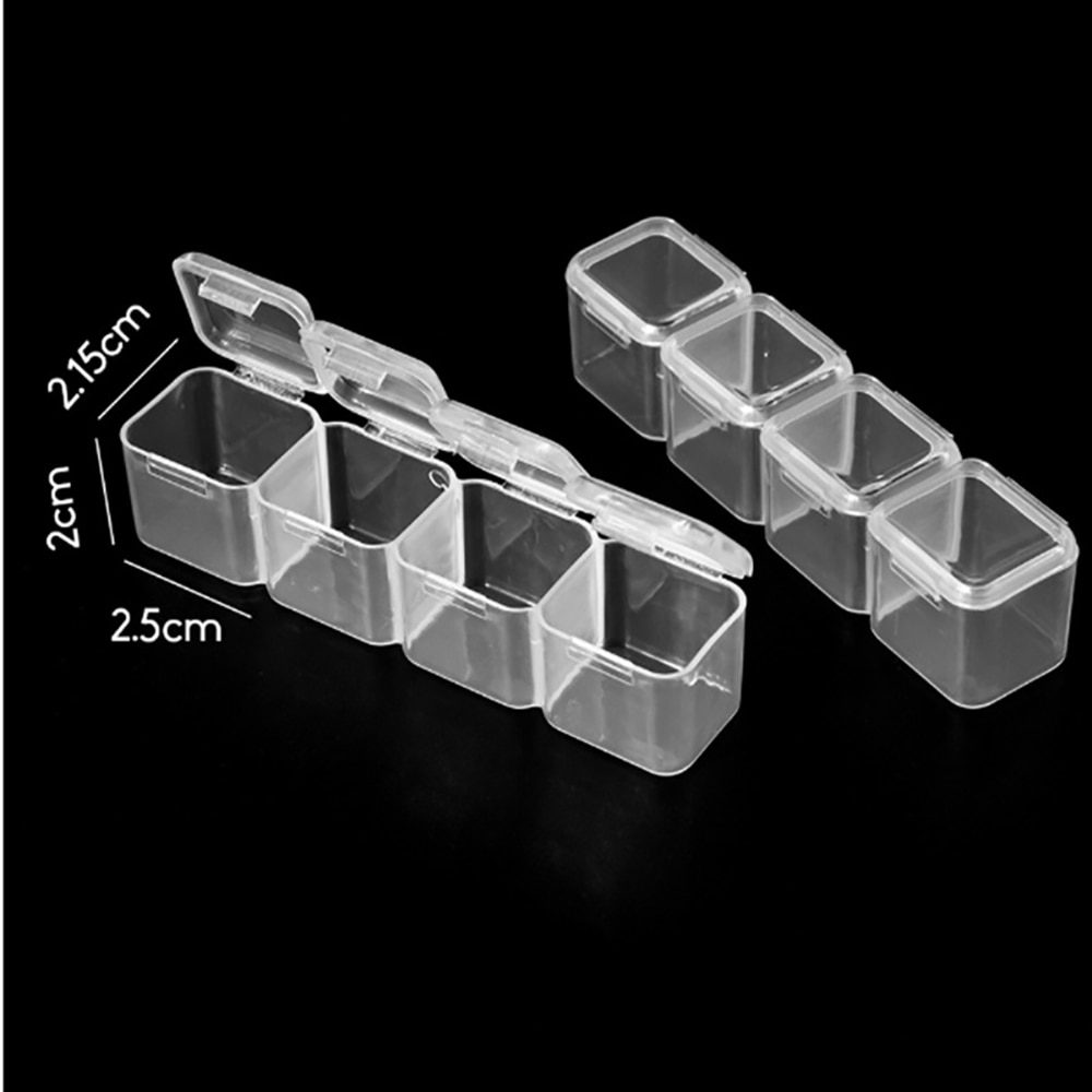 One little box can fit exactly 10 grams of Toho seed beads size 11/o, if somebody is curious about this. They are prety little in reality (big lighter for scale in photos attached) but are good for my beads. The lid can be open easily without the seed beads poping out. The containers are transparent (a little milky, not crystal clear) but is enough to see the colors of beads inside so, overall, i'm happy with purchase.