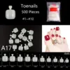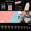 Fake nails made from a variety of materials, including acrylic, gel, dip powder, and silk wrap. Each material has its own unique qualities and benefits. Available in different sizes to fit various nail widths and lengths. They typically come in a set of 10 nails, with sizes ranging from 0 to 9.