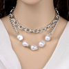 Fashion Chain Pearl Necklace For Women Baroque Pearl Metal Charm Pendants Necklaces Choker Snake Chain Jewelry Gold Silver Color