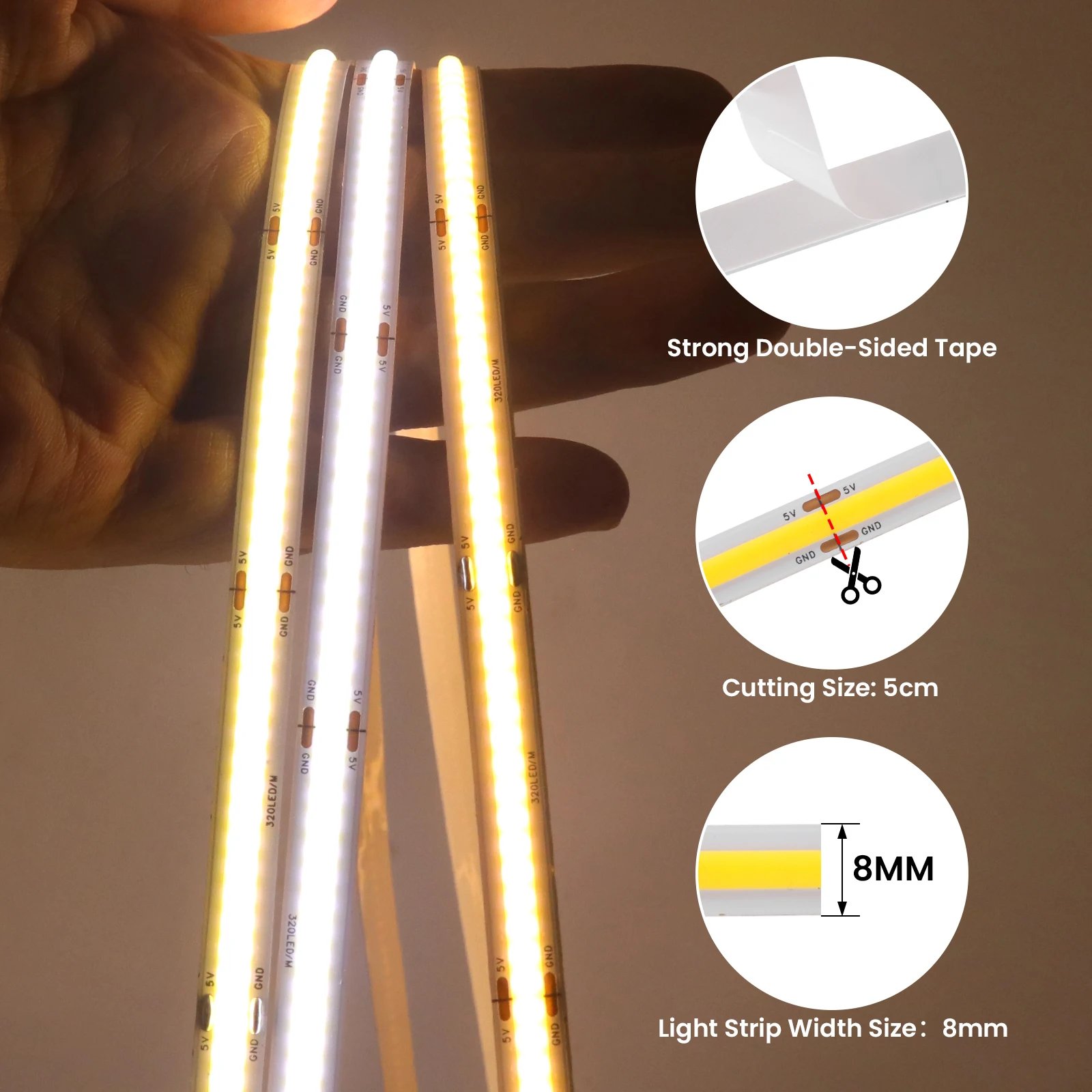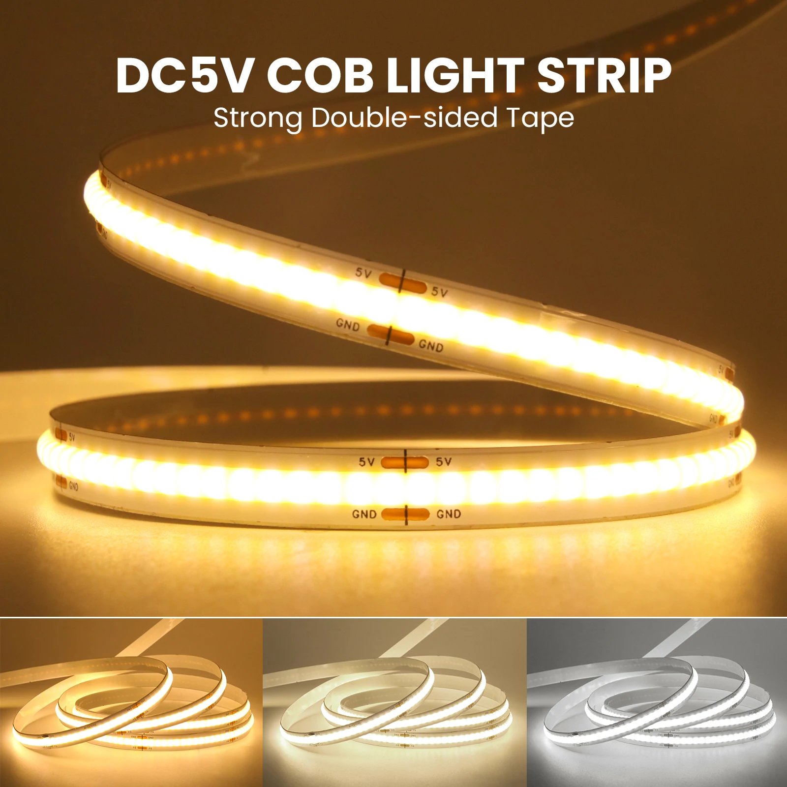 - Product Name: 5V COB LED Strip with 3AA Battery Box