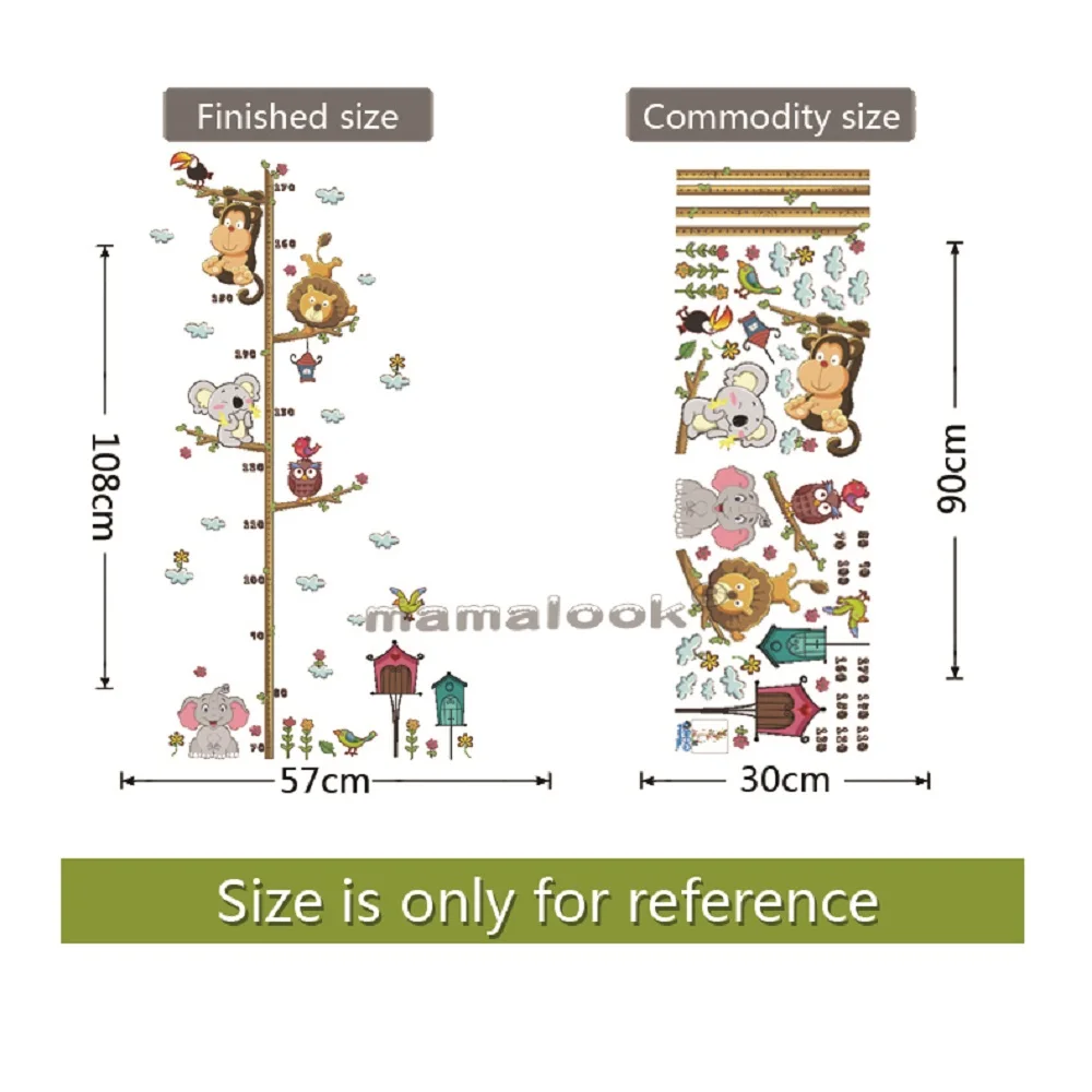 Cartoon Animals Lion Monkey Owl Elephant Height Measure Wall Sticker For Kids Rooms Growth Chart Nursery Room Decor Wall Art