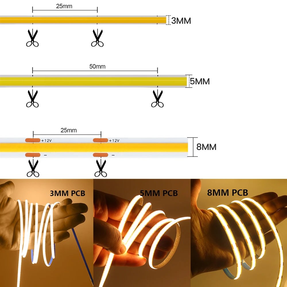 Add a touch of elegance and brightness to your surroundings with the ultra bright COB LED strip light. Elevate your décor and create a cozy atmosphere effortlessly!