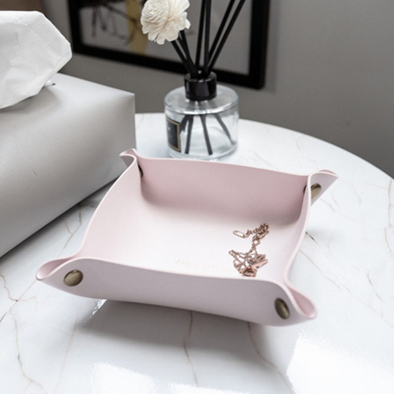 This kind of desktop storage box with full design feeling is a popular style. It is made of PU leather. It is small and exquisite. It can be selected from nine colors. It can store cosmetics, jewelry, keys, remote control panel and other small things. It is both storage and decoration, adding a color to the ordinary daily life