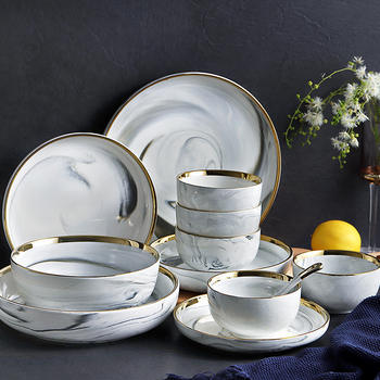 Marble ceramics plates and bowls dinnerware sets