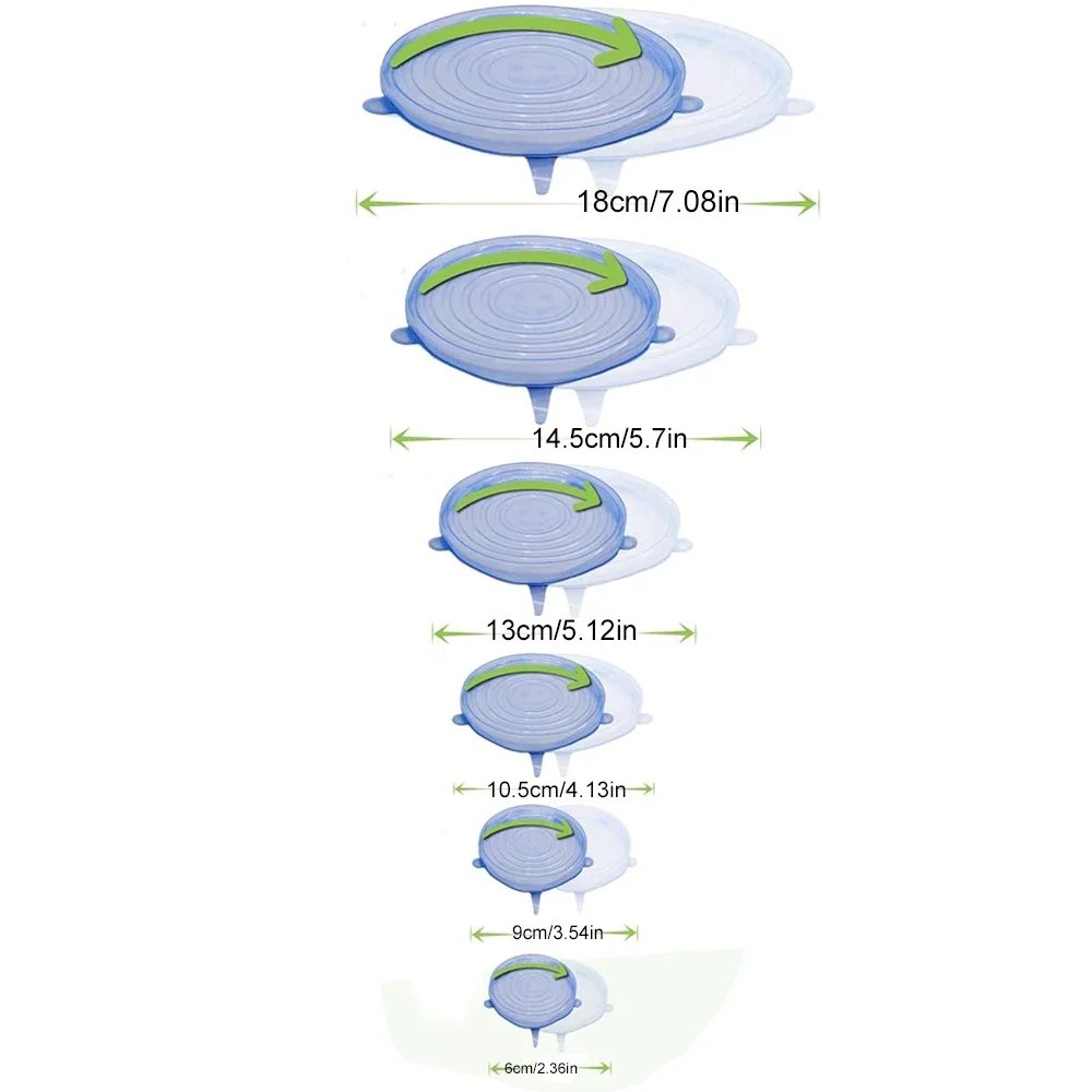 Containers in sizes: 18cm, 14.5cm, 13cm, 10.5cm, 9cm, and 6cm