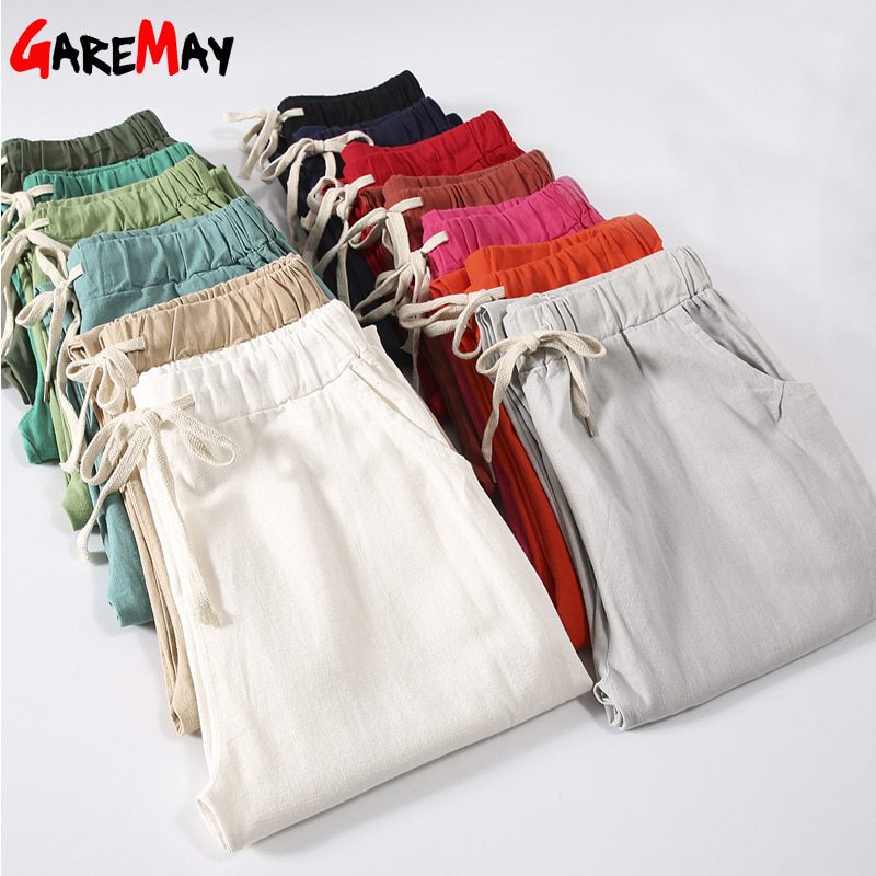 Cotton-linen trousers, of excellent quality! Pants shortened, at the waist wide elastic, pulled by a lace, on the sides and behind standard pockets, incredibly comfortable to wear and even in the heat in them is not hot. Quality factory. On its parameters: height 165 cm; 87-68-92 chose the size L, sat perfectly at the waist and hips there is a stock. In the photo of the store, the color is muffled, in reality, each color is brighter. Pants are very satisfied, an excellent summer option for everyday wear. The delivery time to Russia was 15 days, the trousers were perfectly packed.
