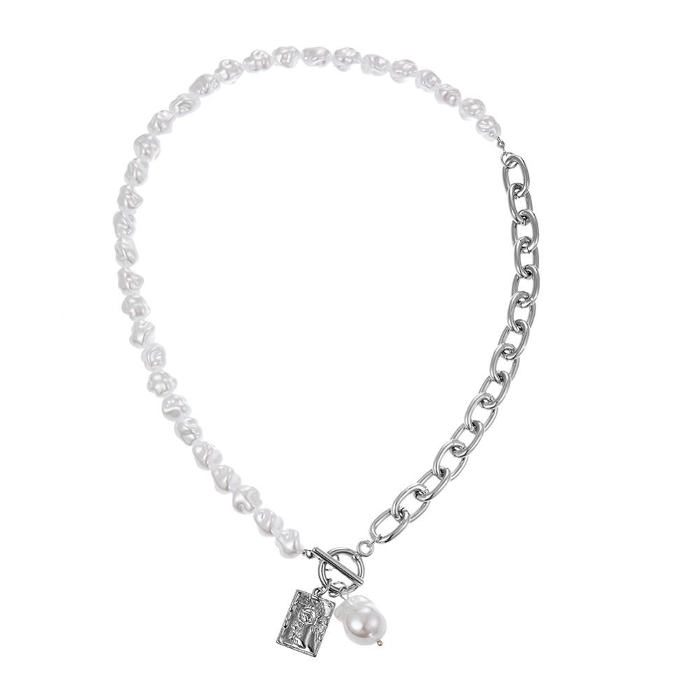 KMVEXO Vintage Baroque Irregular Pearl Lock Chains Necklace 2020 Geometric Aangel Pendant Love Necklaces for Women Punk Jewelry