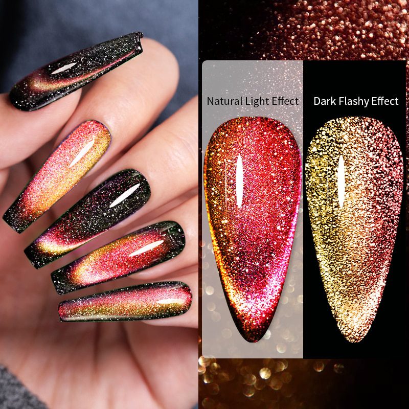 Step 5. Apply cat magnetic uv gel, do not cure and put the magnet over the nails for 10-15 seconds to get the cat maganetic effect,and then immediately cure with UV lamp for 2 minutes or cure with LED lamp for 60 seconds.