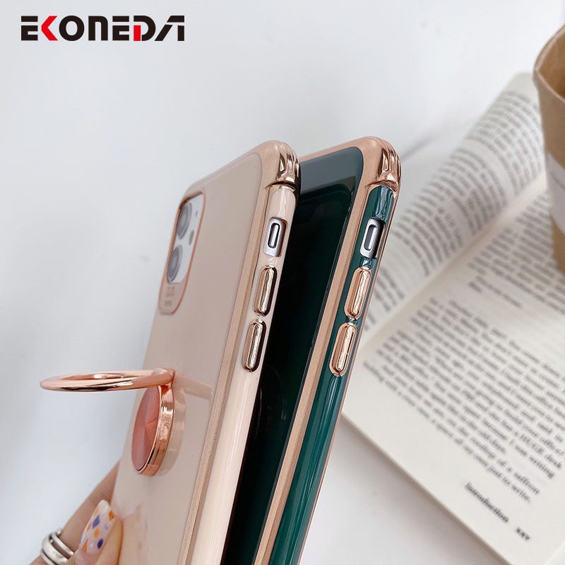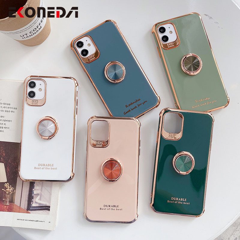Finger Ring Stand Case For iPhone 7 8 12 Pro 11 XS Max X XR Shell Luxury 6D Plated Soft Phone Holder Cover Plain