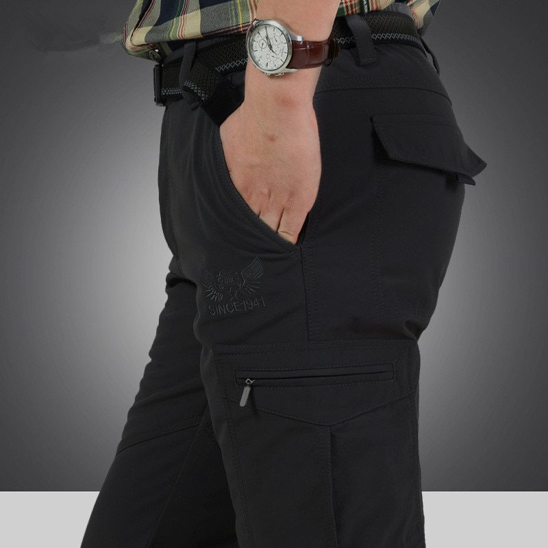 Men Winter Fleece Pockets Long Trousers