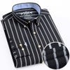 Men's Long Sleeve Oxford Plaid Striped Casual Shirt Front Patch Chest Pocket Regular-fit Button-down Collar Thick Work Shirts