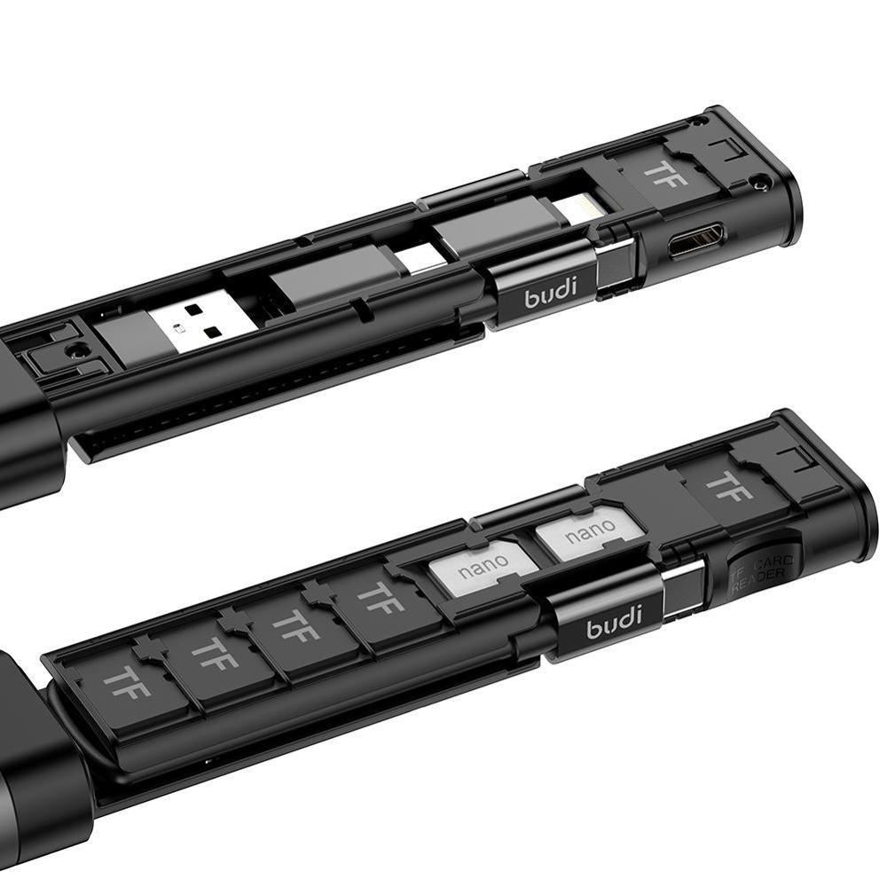 This was a bit of an impulse buy, but I am somehow glad I did because so far I am a bit surprised that I actually like this product. It is nice for storing µSD cards, although I am still on the fence about the nanoSIMs. I have a few of them, yes, but I already have places to store them. It is very well build, nice and functional, looks really good. I have a the few little gripes I, which are actually more improvements than gripes: 1: Plugs exist that combine a lightning and µUSB into one plug. InCharge uses them on their InCharge X cables (see photo), and that way I would not even have to make the decision between µUSB or lightning adapter like I have with this product. 2. The µUSB cable, when plugged in, blocks the stick from being closed. It would be better in the end of the stick. 3. There is still room to use the other end of the stick to store a SD card or adapter.