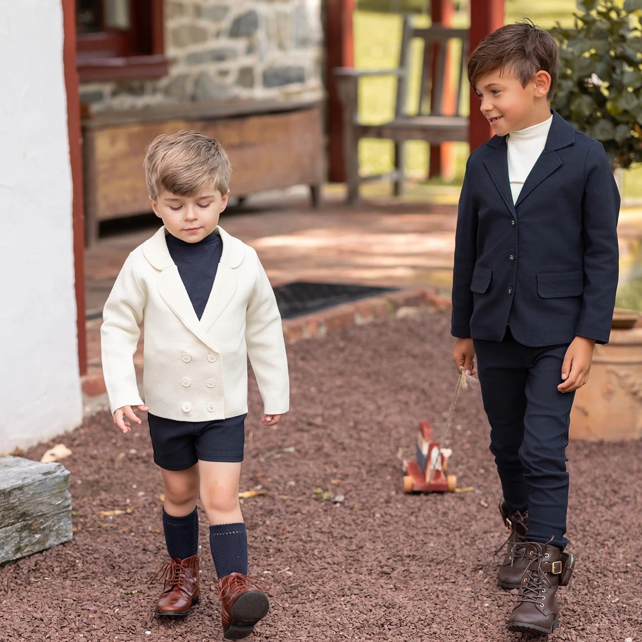 Material: Modal top: Modal, Navy velvet dress/baby girls set/girls velvet skirt/navy velvet blazer: Velvet, Overalls/pants/check blazer: 68% Polyester, 28% Rayon, 4% Spandex, White sleeveless cardigan: 100% Cotton, White knitting blazer: 100% Cotton