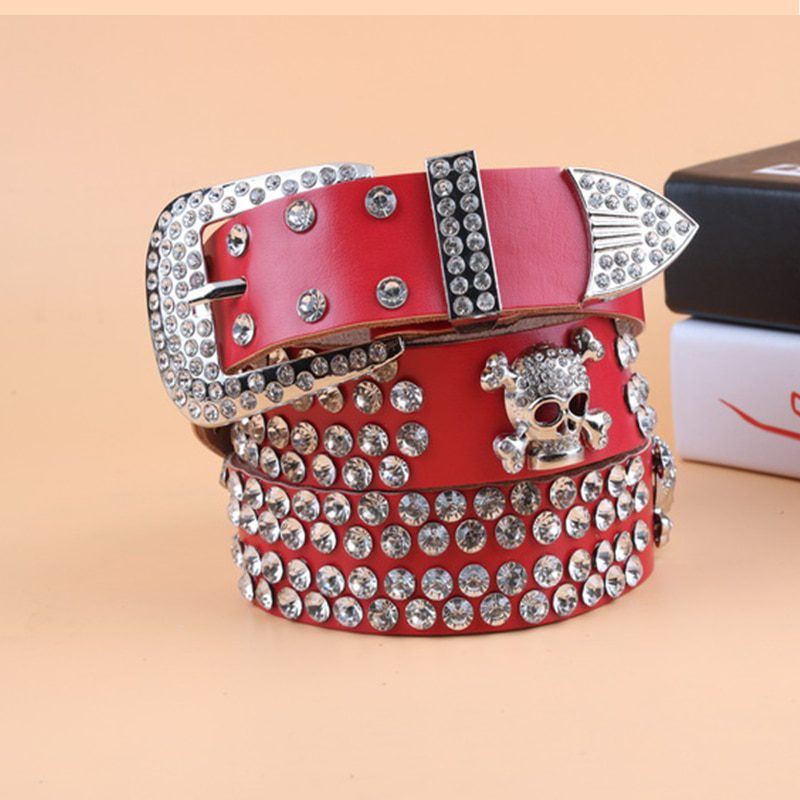 Product Name: TOTRUST Wide Buckle Belt For Women Woman Vintage Rhinestone Skull Belts Second Layer Cow Skin Top Quality Strap Female For Jeans